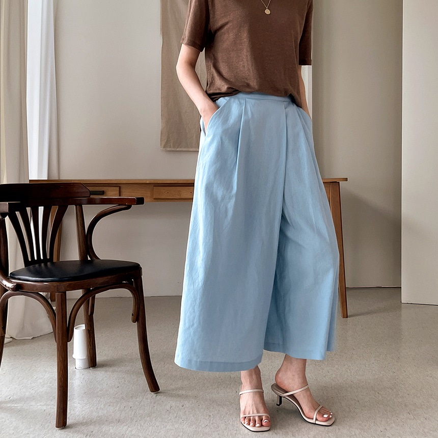 Cuối cùng, quần culottes là một lựa chọn rất đáng cân nhắc cho mùa nồm ẩm. Với kiểu dáng rộng rãi và thoải mái, quần culottes giúp bạn dễ dàng di chuyển mà không lo bị gò bó. Chất liệu vải mềm mại và thoáng khí giúp bạn cảm thấy dễ chịu ngay cả khi trời ẩm ướt. Bạn có thể kết hợp quần culottes với những chiếc áo phông đơn giản hoặc áo blouse để tạo ra vẻ ngoài thanh lịch và hiện đại. Đặc biệt, kiểu quần này cũng rất dễ phối hợp với giày thể thao hoặc giày cao gót, tùy theo phong cách mà bạn muốn thể hiện.